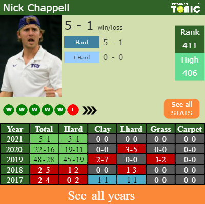The last time that they fought against each other, Chappell won 6-3 6-4 in the qualifications in the Potchefstroom 1 Challenger back in February 2021.