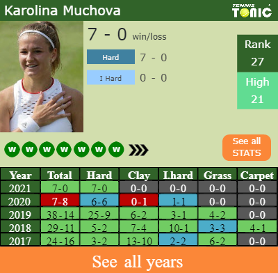 Karolina has a 7-0 win-loss record in 2021, 7-0 on hard (See FULL STATS).