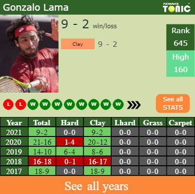 - Gonzalo LamaLama – Sebastian BaezBaez (0-0) – H2H and prediction