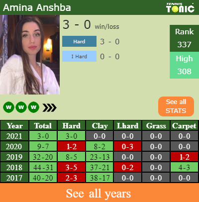 The pick for Tennis Tonic is Amina Anshba who should win in 3 sets.
