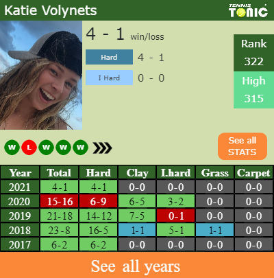 Volynets has a 4-1 win-loss record in 2021, 4-1 on hard (See FULL STATS).