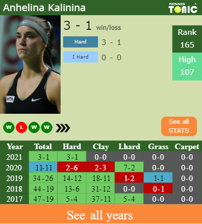 Anhelina has a 3-1 win-loss record in 2021, 3-1 on hard (See FULL STATS).