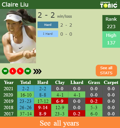 - Claire LiuLiu – Anhelina KalininaKalinina (1-1) – H2H and prediction