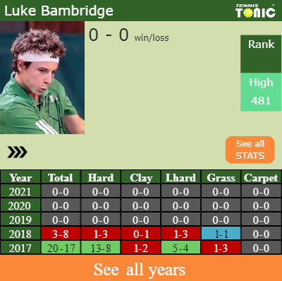 In terms of his career, Bambridge has an overall 49-61 record. He has a negative 17-19 record on hard.