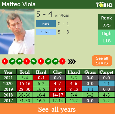 Viola has a 5-4 win-loss record in 2021, 0-1 on hard (See FULL STATS).