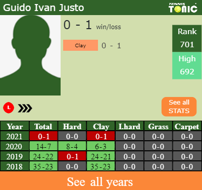 The Argentine has a 0-1 win-loss record in 2021, 0-1 on clay (See FULL STATS).