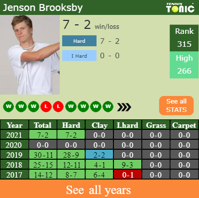 Brooksby has a 7-2 win-loss record in 2021, 7-2 on hard (See FULL STATS).