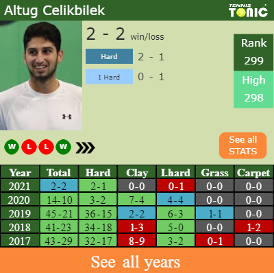 The Turk has a 2-2 win-loss record in 2021, 2-1 on hard (See FULL STATS).