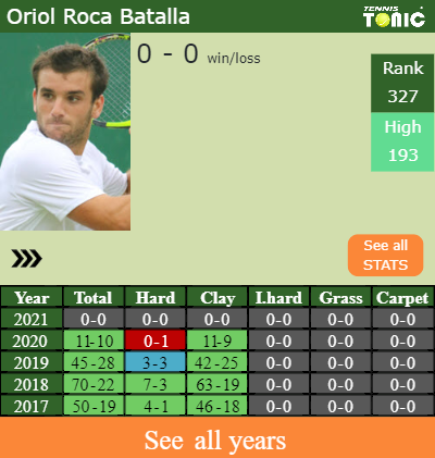 Talking about his overall career, Roca Batalla has an overall 438-245 record. He has a positive 363-192 record on clay.