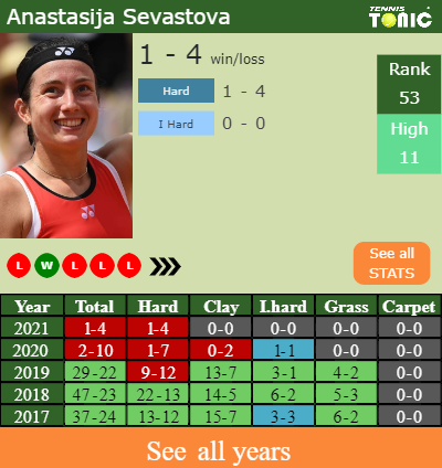 The Latvian has a 1-4 win-loss record in 2021, 1-4 on hard (See FULL STATS).