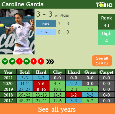 The pick for Tennis Tonic is Caroline Garcia who should win in 3 sets.