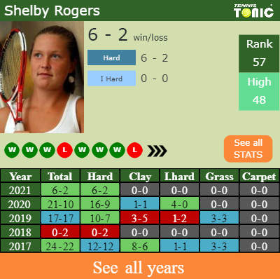 Shelby has a 6-2 win-loss record in 2021, 6-2 on hard (See FULL STATS).