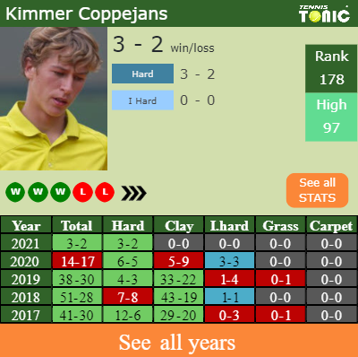 The Belgian has a 3-2 win-loss record in 2021, 0-0 on clay (See FULL STATS).