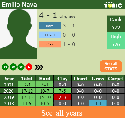 Nava has a 3-1 win-loss record in 2021, 0-0 on clay (See FULL STATS).