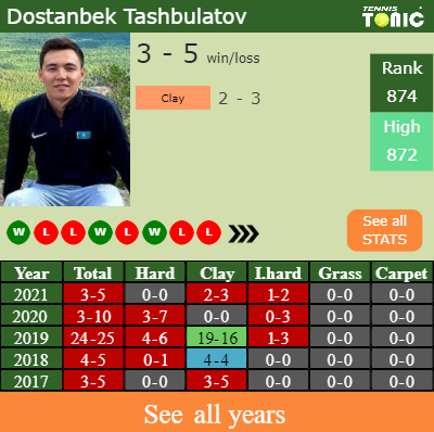 - Dostanbek TashbulatovTashbulatov – Prajnesh GunneswaranGunneswaran (0-0) – H2H and prediction