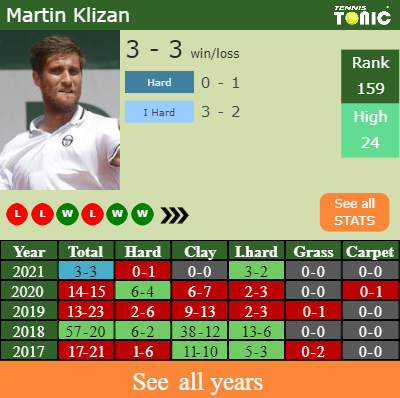 - Martin KlizanKlizan – Prajnesh GunneswaranGunneswaran (1-0) – H2H and prediction