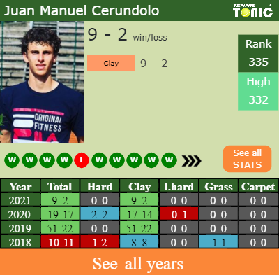 Juan has a 9-2 win-loss record in 2021, 9-2 on clay (See FULL STATS).