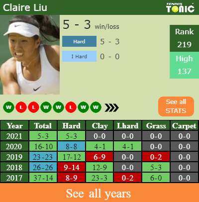 The pick for Tennis Tonic is Claire Liu who should win in 3 sets.