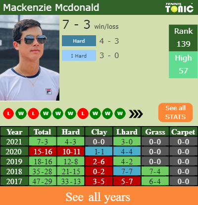 - Mackenzie McdonaldMcdonald – Henri LaaksonenLaaksonen (0-1) – H2H and prediction