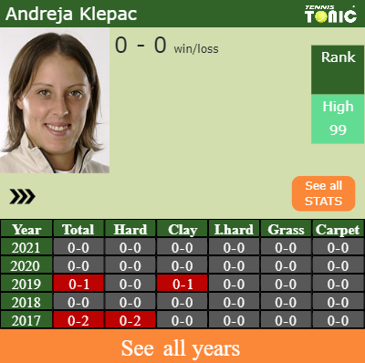 - Laura SiegemundSiegemund – Andreja KlepacKlepac (1-0) – H2H and prediction