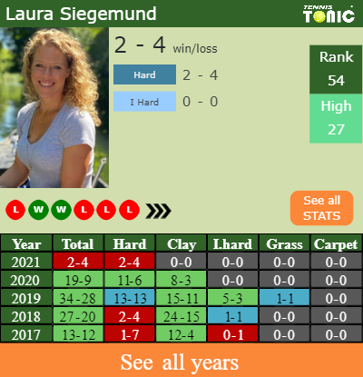 The German has a 2-4 win-loss record in 2021, 2-4 on hard (See FULL STATS).