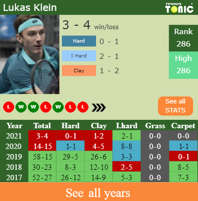 The last time that they competed against each other, Klein won 6-4 6-3 in the 3rd round in the Prague Challenger back in 2019.
