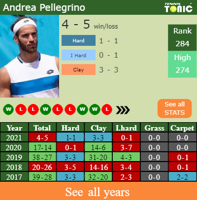 Talking about his overall career, Andrea has an overall 176-153 record. He has a positive 138-99 record on clay.