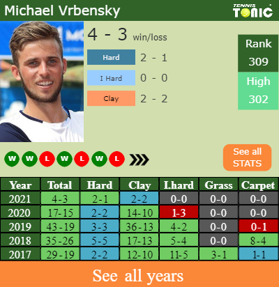 Vrbensky has a 4-3 win-loss record in 2021, 2-2 on clay (See FULL STATS).