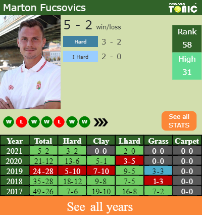 The Hungarian has a 5-2 win-loss record in 2021, 2-0 on indoor hard courts (See FULL STATS).
