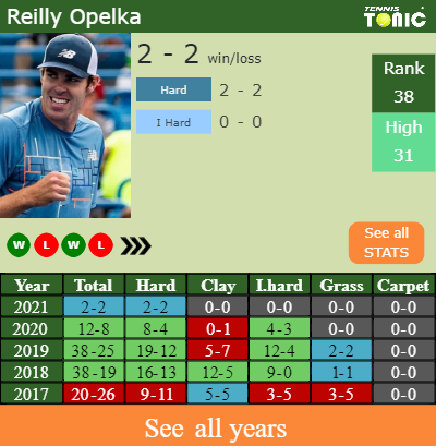 Opelka has a 2-2 win-loss record in 2021, 0-0 on indoor hard courts (See FULL STATS).
