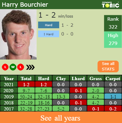 There is no head to head record between Harry Bourchier and Zizou Bergs since this will be the first time that they will square off in the main tour.