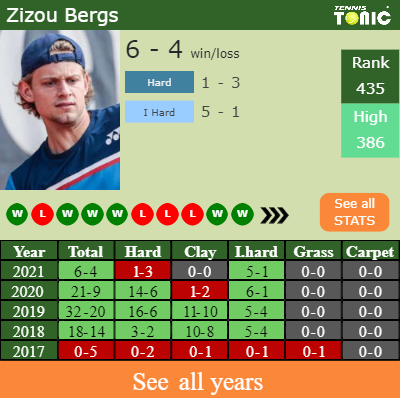 Bergs has a 6-4 win-loss record in 2021, 5-1 on indoor hard courts (See FULL STATS).