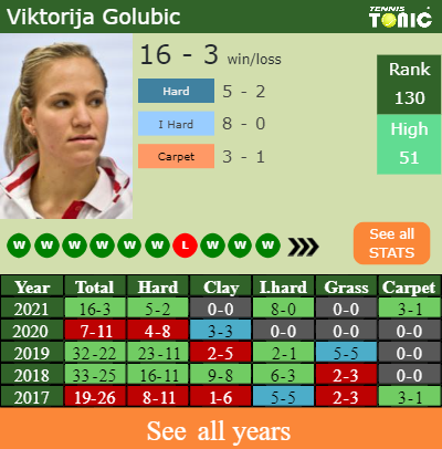 - Viktorija GolubicGolubic – Caroline GarciaGarcia (0-0) – H2H and prediction