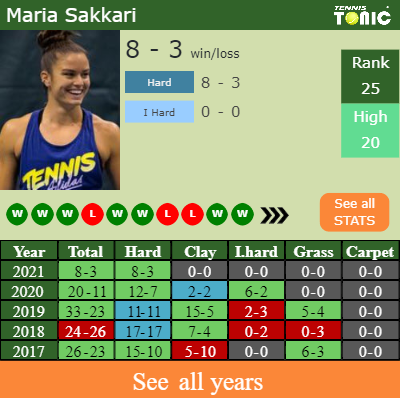 The Greek has a 8-3 win-loss record in 2021, 8-3 on hard (See FULL STATS).