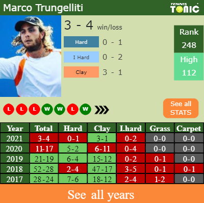 Marco has a 3-4 win-loss record in 2021, 3-1 on clay (See FULL STATS).