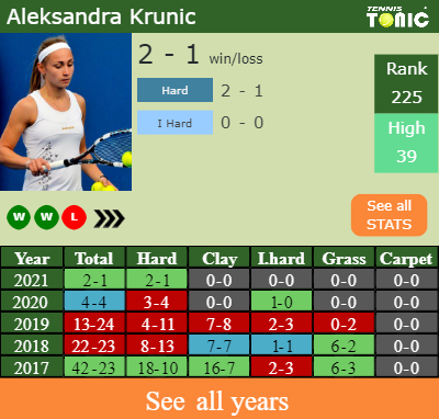 Ranked no. 225, Krunic will start her run in Dubai after she played her last match at the Dubai where she lost 6-1 6-2 to Sherif in the qualifications on the 13th of January.