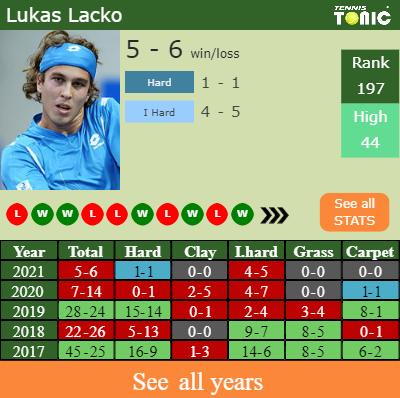 Lacko has a 5-6 win-loss record in 2021, 1-1 on hard (See FULL STATS).
