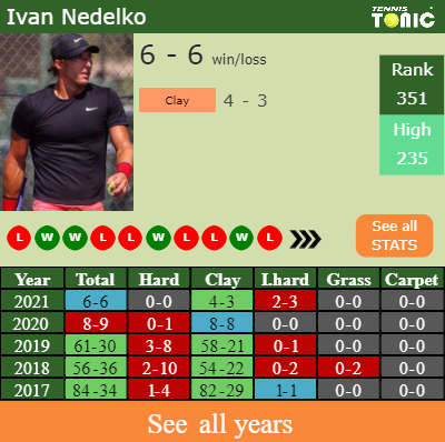 Nedelko has a 6-6 win-loss record in 2021, 2-3 on indoor hard courts (See FULL STATS).