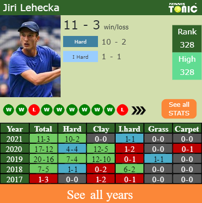 Jiri has a 11-3 win-loss record in 2021, 1-1 on indoor hard courts (See FULL STATS).