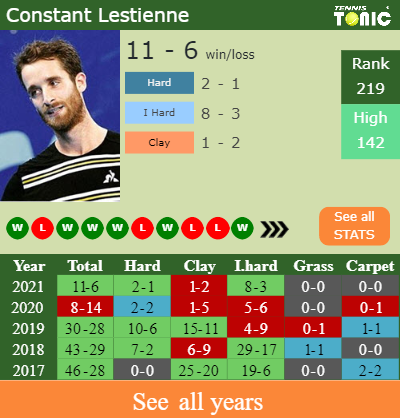 As per the initial odds, Constant Lestienne is the pick to win this match.