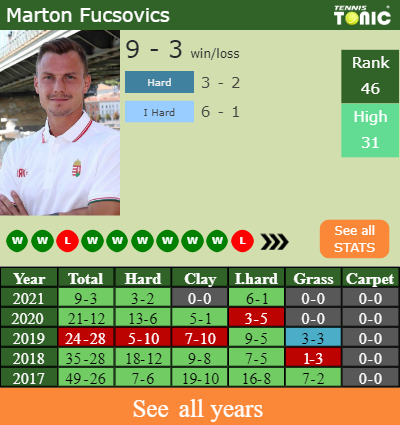 Fucsovics has a 9-3 win-loss record in 2021, 3-2 on hard (See FULL STATS).