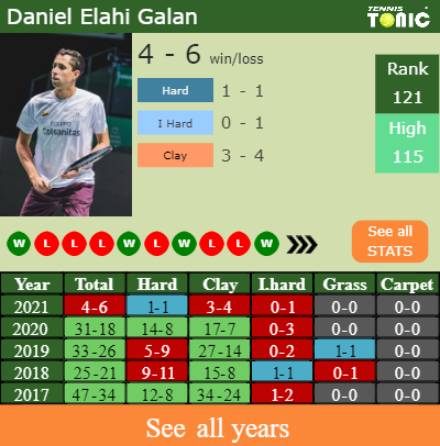 Daniel has a 4-6 win-loss record in 2021, 3-4 on clay (See FULL STATS).