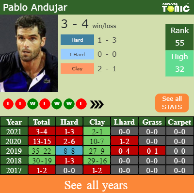 Talking about his overall career, Andujar has an overall 474-407 record. He has a positive 419-267 record on clay.