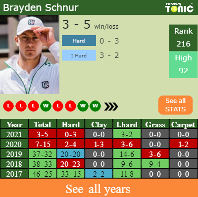 Schnur started his run at this tournament from the qualifications. In the main draw, he hasn’t lost yet a set in this tournament to win 55% of the points he played.
