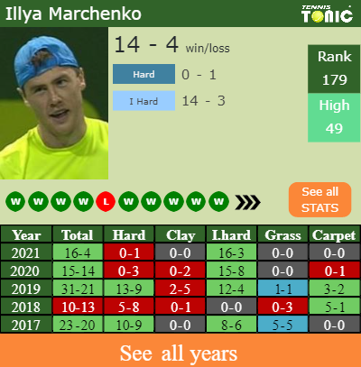 Illya has a 16-4 win-loss record in 2021, 16-3 on indoor hard courts (See FULL STATS).