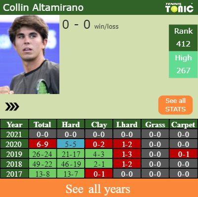 In terms of his career, Collin has an overall 160-111 record. He has a positive 115-69 record on hard.