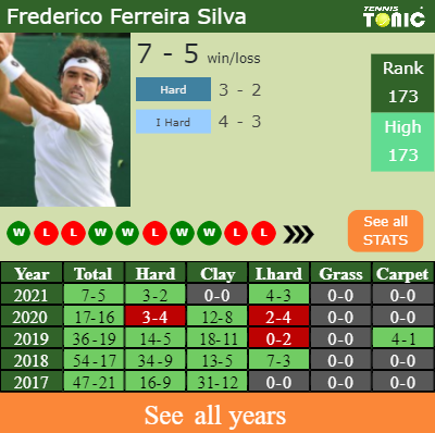 The Portuguese has a 7-5 win-loss record in 2021, 3-2 on hard (See FULL STATS).