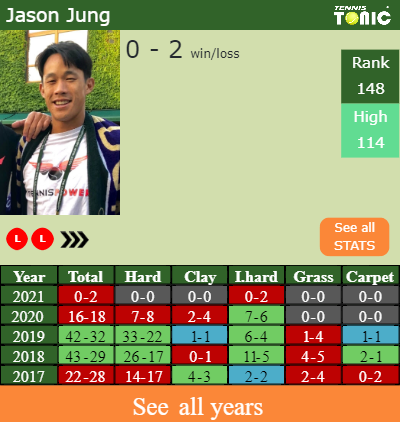 This will be the 2nd time that Jason Jung and Frederico Ferreira Silva clash against each other. The head to head is 1-0 for Ferreira Silva (see full H2H stats), 1-0 on hard.