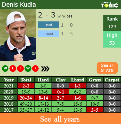 The American has a 2-3 win-loss record in 2021, 1-0 on hard (See FULL STATS).