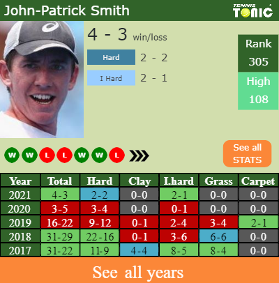 John-Patrick has a 4-3 win-loss record in 2021, 2-2 on hard (See FULL STATS).